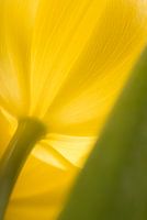 "De gele tulp" is een macrofoto van een gele tulp van onderaf. Doordat het licht door de gele bloemblaadjes van de tulp gaat, ontstaat er een zacht geel lichteffect, een soort dromerig sfeertje.