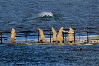 Vijf nonnen aan de rand van een natuurzwembad in het noorden van het eiland Tenerife wagen zich aan natte voeten met een zwemmer in het beschermde deel.