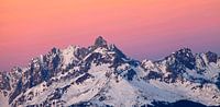 De Gosaukamm en de Bischofsmütze op het blauwe en roze uur