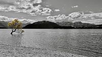 Ervaar de adembenemende schoonheid van The Wanaka Tree, een iconisch symbool van Nieuw-Zeeland, vastgelegd in een unieke zwart-wit compositie. Terwijl de omgeving, inclusief het serene water van Lake Wanaka en de dramatische bergen, in tijdloze zwart-wit tinten is weergegeven, springt de boom eruit met zijn warme gouden herfstbladeren. Deze opvallende kleuraccenten brengen de boom tot leven en maken dit kunstwerk een visueel meesterwerk.