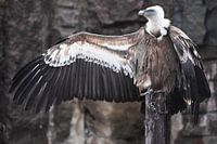Koop dit vogel kunstwerk De Griffon Gier zit prachtig, spreidt zijn enorme vleugels met lange veren, aasetvogel, de vleugels van Michael Semenov op canvas, aluminium dibond, (ingelijste) fotoprint, behang en ArtFrame, op maat geprint in Fine-Art kwaliteit.