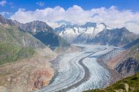 De Grote Aletschgletscher op een zonnige zomerdag in juli gezien vanaf Riederalp met in de achtergrond de Aletschhorn