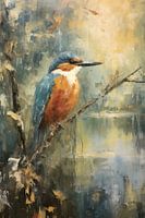 Dit werk uit de serie Faded Dreams toont IJsvogeltje zittend op een tak langs een riviertje. Het kleurenpalet van het kunstwerk is ingetogen maar levendig en geeft een dromerige vintage uitstraling aan uw interieur!