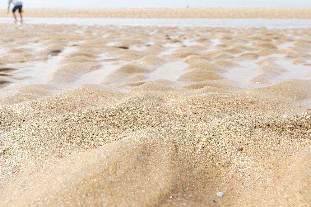 Zandstrand bij het populaire strand van De Haan aan de Belgische Noordzeekust bij eb