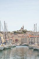 Op deze foto zie je boten in de jachthaven van Marseille op een stralende zomerdag in zachte pastel kleuren.