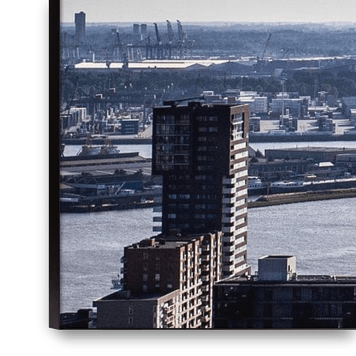 Koop de Rotterdam foto De Haven van Rotterdam (Panorama) van Aiji Kley als print op canvas, aluminium dibond, (ingelijste) fotoprint, behang en ArtFrame. Voor jou op maat geprint in Fine-Art kwaliteit.