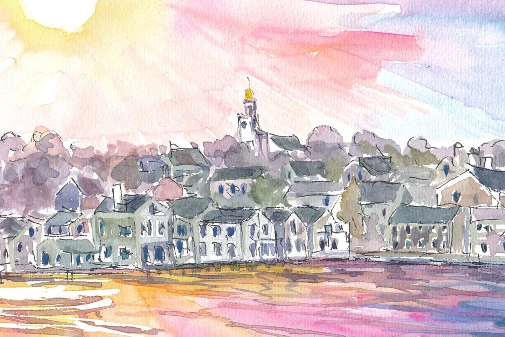 De Havenscène van Nantucket Massachusetts bij zonsondergang