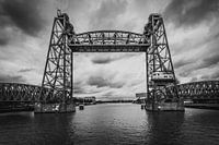 Het imposante Rotterdamse bouwwerk in combinatie met de donkere dreigende wolkenlucht maakt het een mooie, ruwe, dynamische en contrastrijke plaat. Doordat de foto van dichtbij genomen is komt de brug nóg imposanter over. Met behulp van de donkere wolken in de bovenhoeken en de laag gelegen delen van de brug links en rechts van de foto wordt je als het ware de foto ingetrokken.