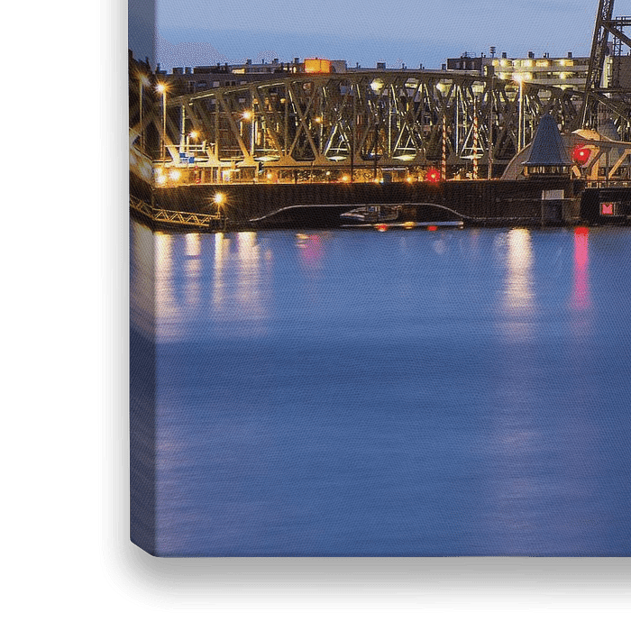 Koop de Rotterdam foto De Hef in avondlicht van Ton de Koning op canvas, aluminium dibond, (ingelijste) fotoprint, behang en ArtFrame, op maat geprint in Fine-Art kwaliteit.