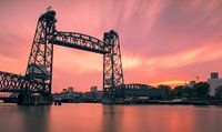 De zon gaat onder achter de Hef in Rotterdam.