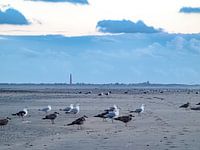 Het uitzicht vanaf De Hors op het eiland Texel rond zonsondergang al kijkend naar Den Helder.