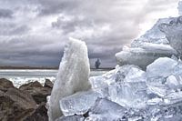 Bergen met ijsblokken naast de brug van Lelystad richting mooi Enkhuizen.