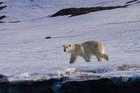 Met de Zodiac op een hele mooie afstand van de IJsbeer gekomen. Je kunt ze zomaar tegenkomen op Spitsbergen. Je moet dus altijd op je hoede zijn!