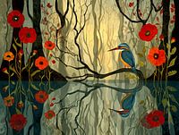 Koop dit art deco kunstwerk De IJsvogel in de Rode Bloemenweerspiegeling van Karina Brouwer als print op canvas, aluminium dibond, (ingelijste) fotoprint, behang en ArtFrame. Voor jou op maat geprint in Fine-Art kwaliteit.