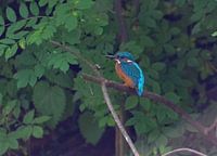 Het vogeltje vliegt ontzettend snel over het water. Maar jagend gaat hij op een takje zitten wachten tot er een visje onder hem zwemt. Dan duikt hij het water in en pikt het visje uit het water.