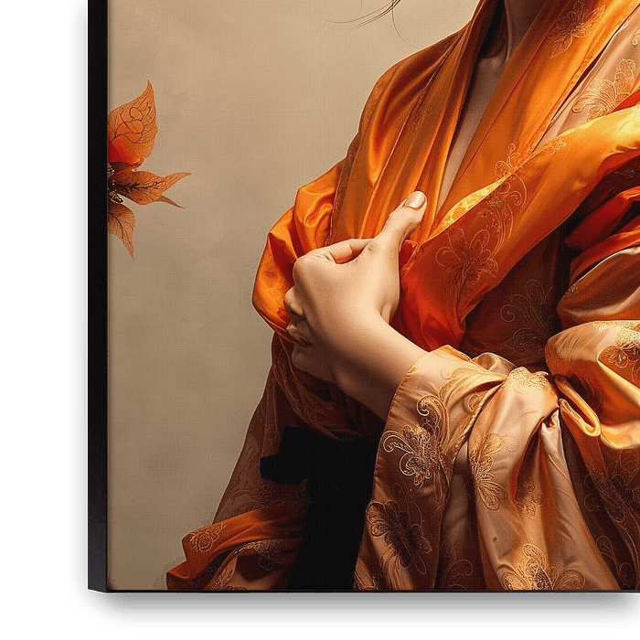 Ontdek de tijdloze schoonheid en elegantie van dit adembenemende portret van een Japanse geisha. Vastgelegd in een moment van gratie en beweging, straalt deze vrouw een unieke charme uit, gekleed in een prachtig ontworpen kimono die haar silhouet accentueert. De delicate stof van…
