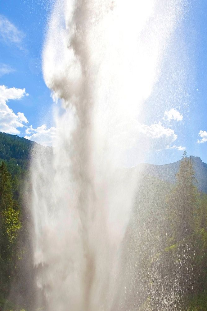 De Johannes waterval in Obertauern stort zich in de diepte. Op de achtergrond de bergen van de Radstädter Tauern in Salzburgerland.