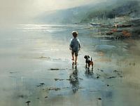 Koop dit digital art kunstwerk De Jongen en zijn Teckel aan de Oneindige Kust | Waar de Wereld Nog Groot en Zacht is van Karina Brouwer als reproductie op canvas, aluminium dibond, (ingelijste) fotoprint, behang en ArtFrame, op maat geprint in Fine-Art kwaliteit.