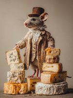 In dit humoristische en fantasierijke digitale kunstwerk staat een muis als ware edelman tussen torens van kaas, compleet met negentiende-eeuws kostuum, hoge hoed en aristocratische houding. De rijke details en zachte penseeltextuur geven het beeld de uitstraling van een klassieke olieverfschildering, maar met een knipoog. Een ode aan verbeeldingskracht, luxe en natuurlijk… kaas!