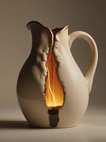 “De Kan van Verloren Werelden” is een kunstwerk dat voelt alsof het een fragment is uit een vergeten mythe. In deze keramieken kruik ontvouwt zich een vurige uitbarsting die de stilte doorbreekt. De lava stijgt op als een gloeiende kolom, kronkelend en pulserend, alsof ze de laatste…