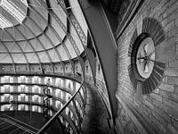 Het monumentale interieur van De Koepel gevangenis Haarlem in zwart wit.