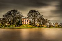 Zicht op de stadsgracht van Leeuwarden met De Koperen Tuin en de Oldehove bij een stevige wind met een 30 seconden sluitertijd gemaakt