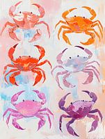 In dit kunstwerk worden de krabben tot leven gebracht in een mix van pastel kleuren en tinten, die prachtig samensmelten en een zomerse sfeer oproepen.