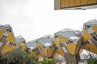 in Rotterdam zijn er kubuswoningen in het geel met een achtergrond van wolken