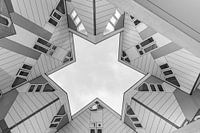 De Kubuswoningen in Rotterdam. Dit werk is onderdeel van de fotocollectie van MS Fotografie. Klik rechts op "Alle werken" om meer werken uit de collectie te zien.