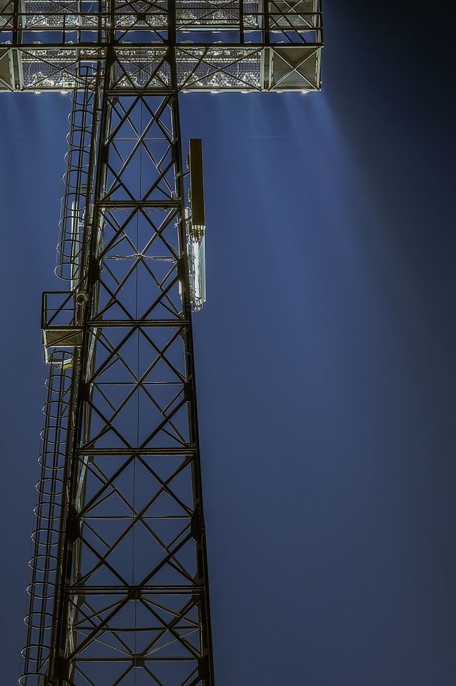 Lichtmast spreidt zijn licht over stadion De Kuip.