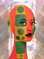 De titel zegt het al. Een bijzondere kleurcombinatie voor een portret van een vrouw met sprekende ogen.