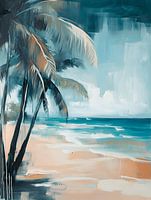 In dit kunstwerk wordt een strand tot leven gebracht in een mix van blauwe kleuren en tinten, die prachtig samensmelten en een zomerse sfeer oproepen.