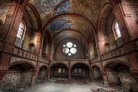 Deze verlaten kerk is vooral opmerkelijk door het gat waardoor het licht naar binnen valt. In betere tijden nog voorzien van glas in lood.