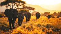 Terwijl de zon langzaam achter de Afrikaanse horizon verdwijnt zijn deze olifanten onderweg naar een plek om de nacht door te brengen.