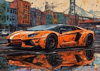 De Lamborghini Aventador in opvallend oranje domineert het Europese stadslandschap, zijn hoekige design en felle aanwezigheid weerspiegeld in de reflecterende grond. Hij wordt aangedreven door een monsterlijke 6,5 liter V12-motor en levert adembenemende snelheid en precisieweergave. Met zijn agressieve aerodynamica, kenmerkende schaardeuren en lage, brede houding combineert dit meesterwerk van Italiaanse techniek extreme prestaties met een opzienbarende stijl.
