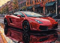 De Lamborghini Gallardo in gedurfd rood steekt af tegen een adembenemend Europees stadslandschap, zijn scherpe lijnen en lage stand weerspiegelen zich op de grond. Aangedreven door een brullende 5.2L V10-motor levert hij opwindende prestaties met een precieze besturing. Iconische schaardeuren, agressieve aerodynamica en een onmiskenbare Italiaanse flair maken hem tot een waar meesterwerk van snelheid en design, dat supercar opwinding mengt met stedelijke verfijning.