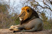 Leeuw, Zuid Afrika. Bij de eerste gamedrive troffen dit geweldige exemplaar aan. Stoer, sterk en zelfbewust. Een van de big five.