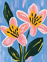 In dit kunstwerk worden lelies tot leven gebracht in een mix van kleuren en tinten, die prachtig samensmelten en een fijne sfeer oproepen.