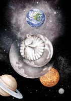 Een kleine kat die zalig slaapt op de maan, midden in de ruimte. Ze droomt vast en zeker dat al die planeten om haar heen de beste ballen zijn waar ze ooit mee gespeeld heeft. Dierenkinderen die op de maan slapen was zo'n schattig idee dat er een hele serie "Moon Dreams" van is gemaakt. Maakt van elke slaapkamer een droomplek en van elke kinderkamer een fantastische plek.