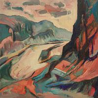 De prachtige vallei van de regenrivier Maas in Wallonië. De rivier stroomt van het Plateau de Langres helemaal naar Rotterdam waar zij uitmondt in de Noordzee. Origineel schilderij is te koop: www.briex.eu