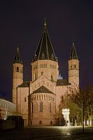 De kathedraal St. Martin in Mainz uit het oosten bij nacht in kunstlicht