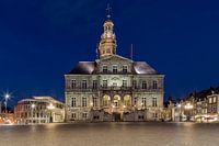 Avondfoto van de Markt in Maastricht, gemaakt op een mooie winteravond. Het stadhuis van Maastricht is mooi verlicht.