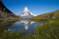 De Matterhorn spiegelend in de Riffelsee in het prachtige Zwitserland