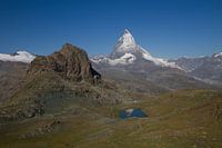 De Matterhorn spiegelend in de Riffelsee in de mooie Zwitserse alphen