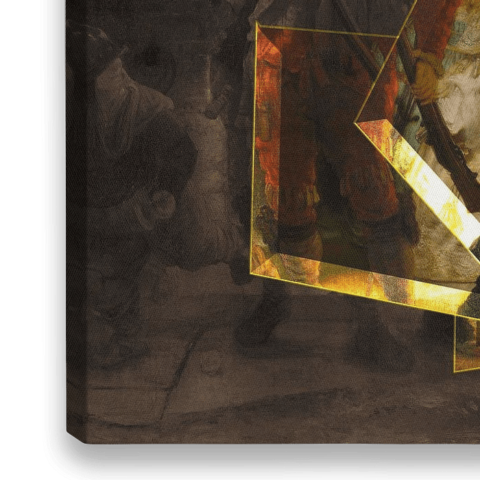 Koop dit schilderij De Moderne Nachtwacht - Rembrandt van Rijn van Lia Morcus als reproductie geprint op canvas, aluminium dibond, (ingelijste) fotoprint, behang en ArtFrame. Voor jou op maat geprint in Fine-Art kwaliteit.