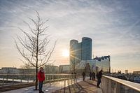 Deze man was stil van het uitzicht vanaf de nieuwe Moreelsebrug in Utrecht. De brug verbind de westkant van de stad met de binnenstad van Utrecht voor fietsers en voetgangers.