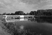 De Muntbrug in Utrecht met het Merwedekanaal. De draaibrug over de Leidse Rijn bij Lombok en Oog in Al spiegelt in het water van het Merwedekanaal, het domein van Utrechtse roeiers. Op de achtergrond de wijk Lombok.