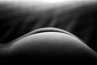Foto van van de billen van een naakte man die op een bank ligt.