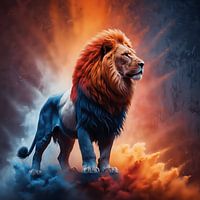 Trost en met overtuiging kijkt deze Leeuw om zich heen. De kleuren van de Nederlandse vlag, Rood, Wit en Blauw geven hem kracht en tonen zijn vaderlandse verbondenheid!