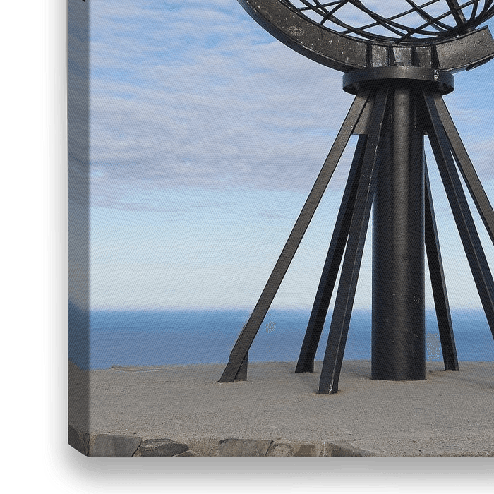 De globe, het monument op het noordelijkste punt van het vaste land van Europa. Het symbool van de Noordkaap staand op eind van het vaste land.